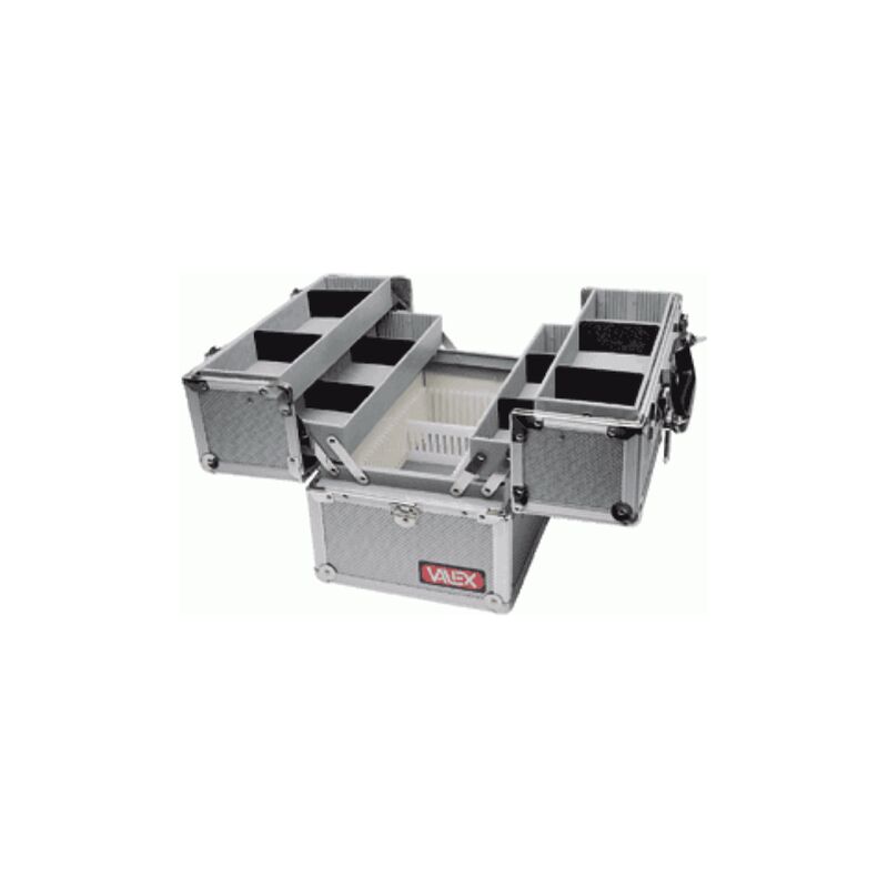 VALIGIA PORTAUTENSILI 5 SCOMPARTI Cinghia a tracolla, in alluminio con rinforzi angolari, serrature con chiavi. Divisori rimovibili. CARATTERISTICHE N°SCOMPARTI: 5 DIMENSIONI SCOMPARTI (mm): N°4:312X35X89 N°1:345X114X200 DIMENSIONI 370x264x228 mm DIMENSIONI VALIGE (mm): 360X240X22 COLORE: GRIGIO ALLUMINIO