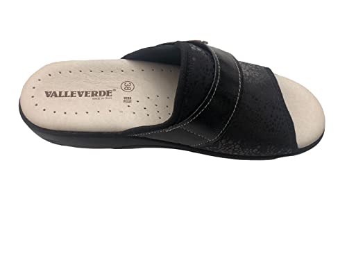 Valleverde Sandali Ciabatte Donna Fondo Memory Strappi 100% Vera Pelle 39 Nero