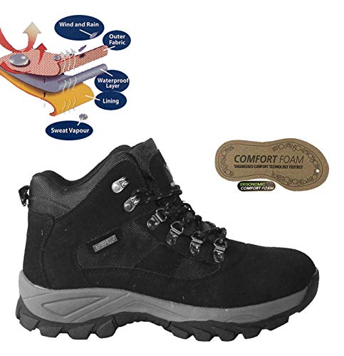 Wyre Valley - Stivali impermeabili da uomo, in vera pelle, traspirante, con lacci in memory foam, per escursionismo, trekking, taglie UK 30-45, Nero (Camoscio nero), 40 2/3 EU