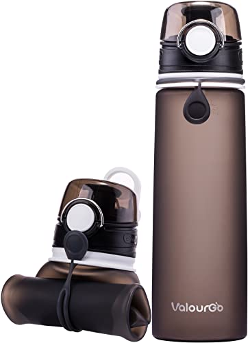 Valourgo Borraccia Pieghevole con valvola Anti perdite -Senza BPA in Silicone Pieghevole e Resistente - Ideale per Lo Sport, Viaggio, Ciclismo e Campeggio - 600 ml (Grigio Antracite)