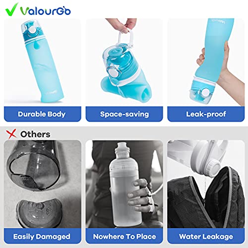 ValourGo Borraccia pieghevole con valvola anti perdite -senza BPA in silicone pieghevole e resistente - Ideale per lo Sport, Viaggio, Ciclismo e Campeggio - 600 ml