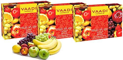 Value Pack of 3 Organic FRUIT SPLASH SOAP with extracts of Orange, Peach, Green Apple Lemon - Acne Prone - Removes Pimples - For All Skin Type - Sulphate Free - Paraben Free - 3 X 75g - Vaadi Herbals