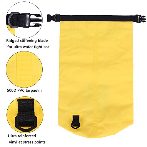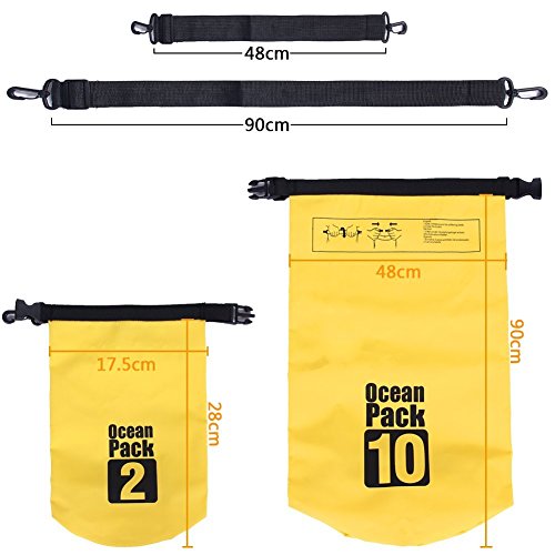 ValueHall (2 Pack 10L/2L leggero 500D impermeabile secco borse con tracolla regolabile durevole, Plus gratis telefono custodia (Giallo)