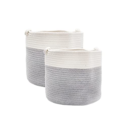 ValueHall Cestello Portaoggetti in Cotone 2 pezzi Cesto Portabiancheria in Corda Pieghevole 30 x 25cm Cesto Portabiancheria Intrecciato con Manici per Bambini Asciugamani Coperta Lavanderia V1D08