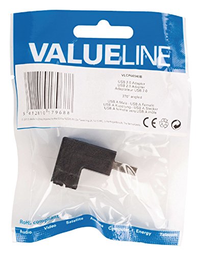 Valueline VLCP60940B Adattatore USB 2.0, Angolo 270°, USB Maschio A - USB Femmina A