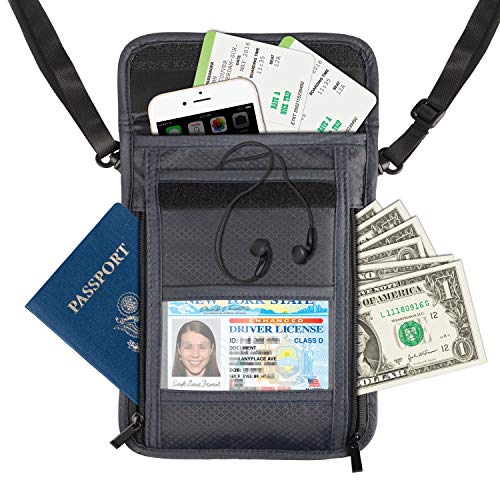 ValueTalks Borsa da Collo Borsello da Viaggio con Chiusura a Chiave RFID Resistente all'acqua Cinturino a Mano Regolabile Portafoglio Collo per Adulti e Bambino