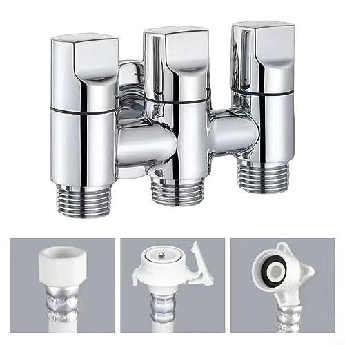 Valvola angolare a 1 ingresso e 3 uscite, splitter per rubinetto a tre vie, valvola deviatrice multifunzione, valvola ad angolo per iniezione dell'acqua a tre vie, per rubinetto da giardino e cucina,