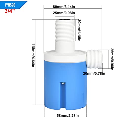 Valvola di controllo del livello dell'acqua della valvola a galleggiante automatica della parte superiore interna da 3/4 ", utilizzata in piscine, vasche per bestiame, acquacoltura, acquari (JYNS-20)