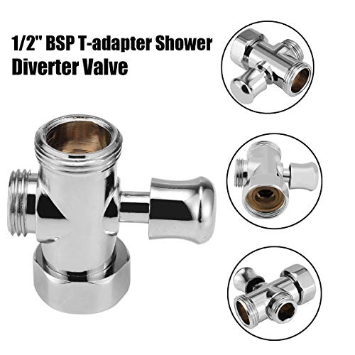 Valvola deviatore a 3 vie per doccia, valvola deviatore per bagno, WC, bidet, 3/4" e 1/2" BSP, adattatore a T per doccia e doccetta, sistema di ricambio