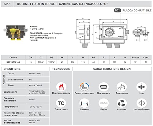 Valvola intercettazione Gas ad incasso a U attacchi dal basso Teco K2.1 by HYDRO HOME