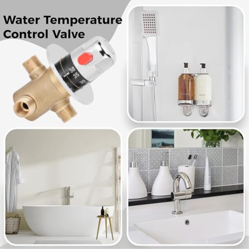 Valvola miscelatrice termostatica in ottone G1/2in, rubinetto a 3 vie Rubinetto di controllo della temperatura miscelatore di temperatura leggero antiscottatura Controllo del termostato del bagno di c