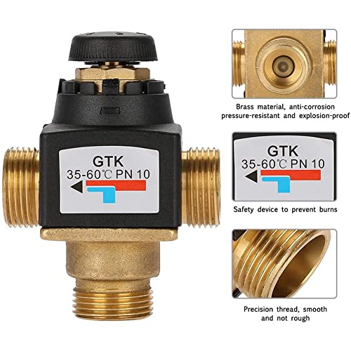 Valvola Miscelatrice Termostatica, Riscaldatore D'Acqua Solare 3 Vie DN20(G3/4) Valvola Miscelatore Acqua Fredda/Calda In Ottone Controllo Della Temperatura Della Doccia, per La Cucina Del Bagno