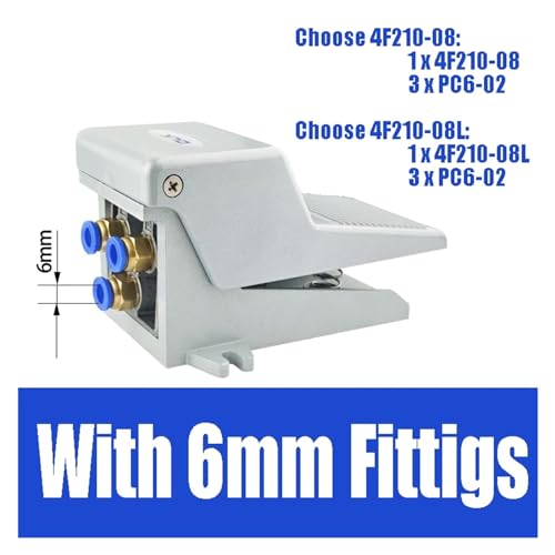 Valvola a pedale pneumatica 4F210-08 Interruttore della valvola a pedale pneumatico a pedale momentaneo a 5 vie a 2 posizioni 4F210-08L Valvola a pedale di bloccaggio (Color: With 6mm Fittings, Siz