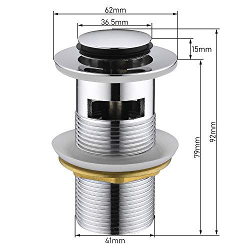 MATERIALE DUREVOLE: Valvola click clack in ottone cromato. Dona nuovo splendore al tuo lavabo con la valvola di scarico a scomparsa con troppopieno.