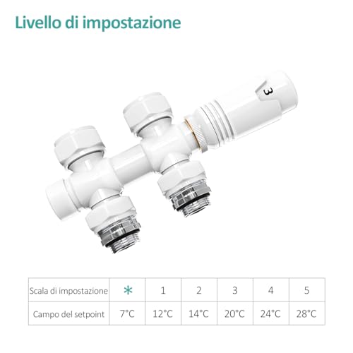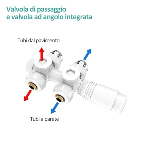 EMKE Valvola Radiatore con Termostato, Valvola per Radiatore e Asciugasciugamani, Valvola Universale Angolare e Diritta, G1/2", Bianco, 2 Pezzi