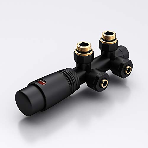 Mai & Mai® Valvola per Radiatori e Scaldasalviette,Valvola a Squadra Termostatiche con Adattatore con Regolazione della Temperatura 6° - 28°, Antracite