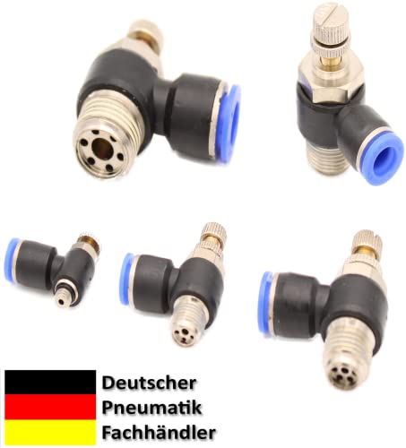 ✅ Facile da usare: contraccolpo dell'aria compressa per aria di scarico, angolato a 90°, temperatura di funzionamento da 0 °C a 60 °C, pressione di esercizio fino a 12 bar, filettatura M5, 1/4", 1/8", 3/8" o 1/2", attacco per tubo IQS Ø 4 mm, 6 mm, 8 mm, 10 mm o 10 mm 2 mm per esterni. Tubo pneumatico calibrato, adatto per: aria compressa oliata e non oliata e gas neutri.