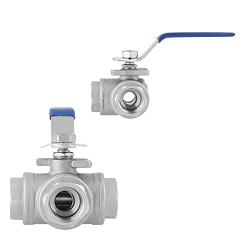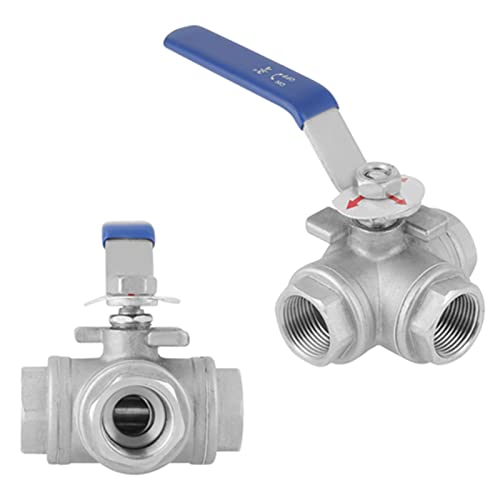 1pc Valvola a Sfera, Valvola a Sfera per Tubi, Valvola a Sfera per Tubi in Acciaio Inox SUS304 Filettatura Femmina Tipo T a Tre Vie 3/4" DN20