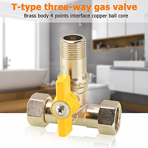 Valvola a sfera 1/2 "Raccordo per scaldabagno Valvola a sfera per gas a 3 vie Sostituzione raccordi per tubo di arresto in rame(F)
