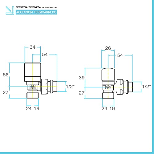 La valvola per termoarredo permette di regolare il flusso d'acqua calda in entrata nello scaldasalviette, con la possibilità di poterne personalizzare anche la temperatura grazie all'apposita testina termostatica installata su di essa. Il detentore invece consente di regolare il flusso dell'acqua in uscita dallo scaldasalviette -Entrambi hanno degli attacchi standard G ½” compatibili con qualsiasi termoarredo presente in circolazione