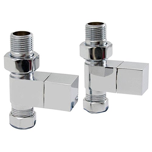 Valvole termosifone per scaldasalviette dritte quadrate, cromate, 15 mm