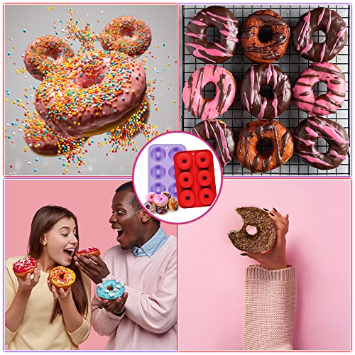 VAMAJOO 2 stampi per ciambelle in silicone + 15 maniche pasticciere - stampi in silicone per pasticceria - stampi per biscotti - stampi per muffin - antiaderenti. Rosso e viola. (Ciambelle)