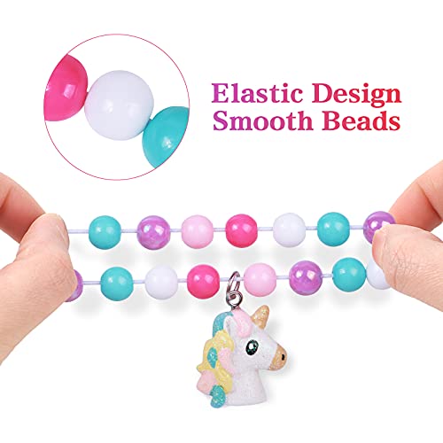 Design Adorabile: Questi braccialetti sono progettati con perline colorate e vari ciondoli, unicorno, arcobaleno, farfalla, fiore, gufo, nuvola, gelato, cane, perla e questi elementi sono apprezzati dai bambini. Questi renderanno la tua principessa adorabile e dolce.