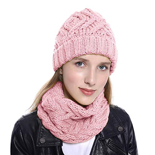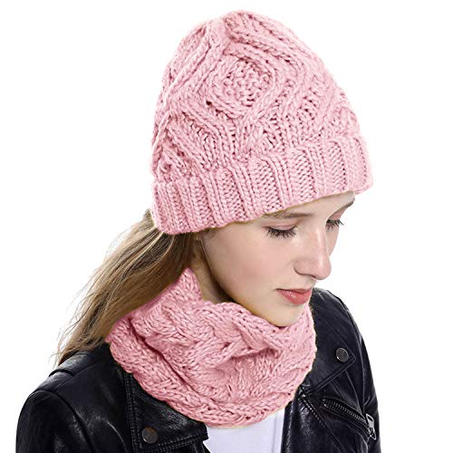 Vamei 2 Pezzi Cappello invernale da donna Berretto Invernale Cappelli Donne Sciarpa e Berretti in Maglia Beanie Cappellini Berretto da Sci Berretto Unisex (rosa)