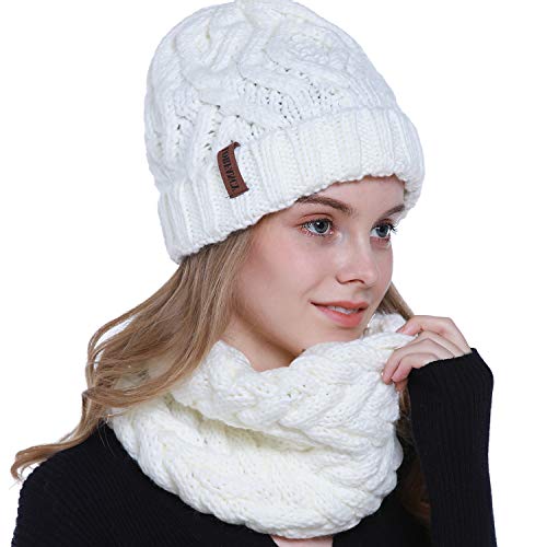 Vamei 2 Pezzi Cappello invernale da donna Berretto Invernale Cappelli Donne Sciarpa e Berretti in Maglia Beanie Cappellini Berretto da Sci Berretto Unisex