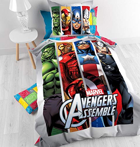 Vamos 004011 - biancheria da letto 1 persona - in cotone, Rosso/Blu/Nero/Verde, Copripiumino singolo 140 x 200 cm + fodera 60 x 70 cm