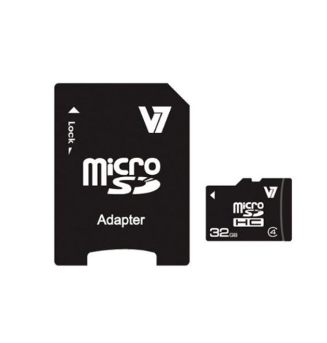 V7 VAMSDH32GCL4R-2E 32GB Micro SDHC Memory Card Class 4 + SD Adapter (ECC, ISP, 10MB/s Read, 4MB/s Write)