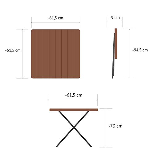 Vanage Tavolino Pieghevole da Giardino in Rattan Effetto Legno | Tavolino di Plastica per Esterni, Terrazza o Salotto - Marrone