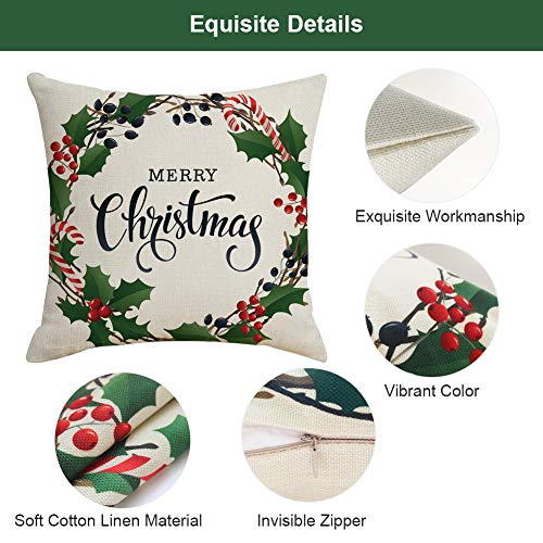 Vanansa Natale Federa 45x45cm, 4pcs Federa di Lino,Decorativo Gettare Caso Federa cuscini natalizi per Divano Fattoria Decorazioni Natalizie,Verde