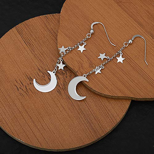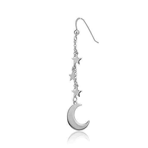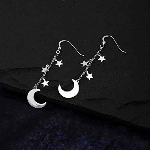 Vanbelle orecchino a goccia pendente con stella e luna in argento sterling con placcatura in rodio per donne e ragazze
