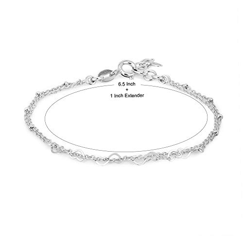 Vanbelle rodio placcato argento 925 interlocked heart & bracciale catena in rilievo doppio strato per donne e ragazze
