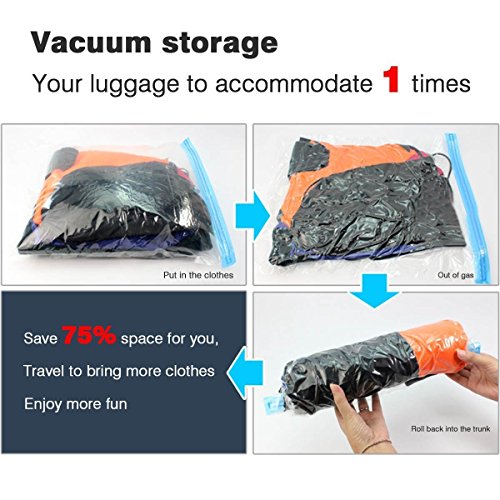 RISPARMIA SPAZIO IN MODO EFFICIENTE: Facili da arrotolare, piega a metà o stendi i tuoi vestiti nei sacchetti, i sacchetti salva spazio ti fanno risparmiare fino al 75% di spazio nell'armadio o in valigia.