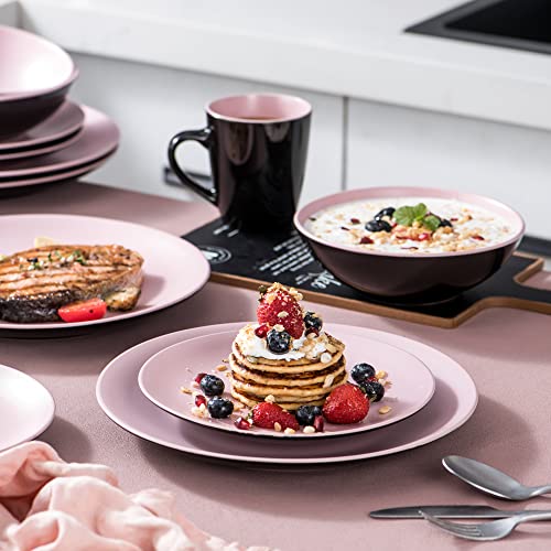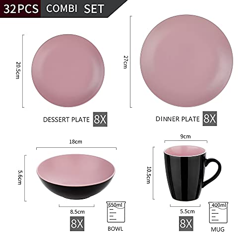 Vancasso Bacche Servizio Piatti Set di 32 Pezzi in Gres, Servizio da Tavola in Ceramica con 8 Piatti Piani, 8 Piatti da Dolce, 8 Tazze e 8 Ciotole per Cereali, Set di Piatti per 8 Persone, Rosa