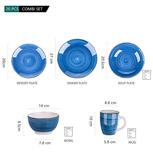 Vancasso Bella Servizio di Piatti per 4 Persone in Ceramica 20 Pezzi, Stoneware, Colore Blu