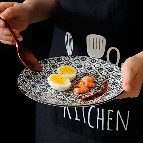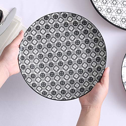 Vancasso Haruka Set 12 Pezzi Servizio da Tavola in Porcellana Set di Piatti da Dessert, Piatti Piatto, Piatti Fondi Insalata Pasta Pizza Tondo Nera e Bianca per 12 Persone
