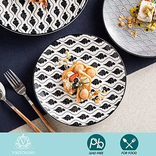 Vancasso HARUKA, Servizio Piatti Set 16 Pezzi, Servizio da Tavola per 4 Persone in Porcellana Nero Stile Giapponese con Piatti da Dessert, Tazza da Caffè, Piatti Piatto, Ciotole per Cereali