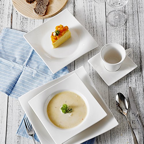 [Prodotti Include] Include - 6 Piatti Piatto, 6 Piatti Fondi, 6 Piatto Dessert, 6 Tazza da Caffè con Piattini per 6 Persone. Molto adatto per l'uso del ristorante, ma soddisfa ancora le vostre esigenze per l'uso quotidiano, garantendo al contempo una dieta sana.