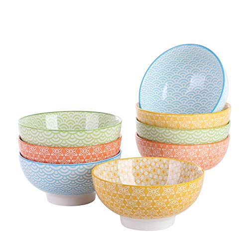 Vancasso Natsuki, Set 8 Pezzi Servizio da Ciotole in Porcellana Combinazione, Ciotole per Cereali Gelato Noodle Snack Dolce, Zuppa, Fruttiere e Insalatiere Verde Giallo Blu Arancione per 8 Persone