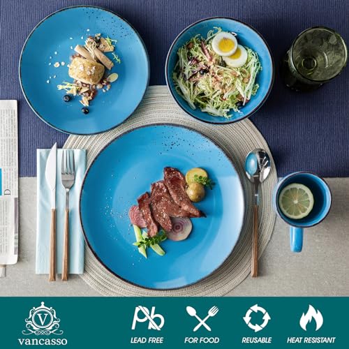 Vancasso NAVIA-5 Servizio Piatti 16 Pezzi, Servizio da Tavola 4 persone, Dipinto a Mano in Gres con 4 Piatti Piani, 4 Piatti da Dessert, 4 Tazza da caffè e 4 Ciotole Cereali, Collezione Oceano Vintage