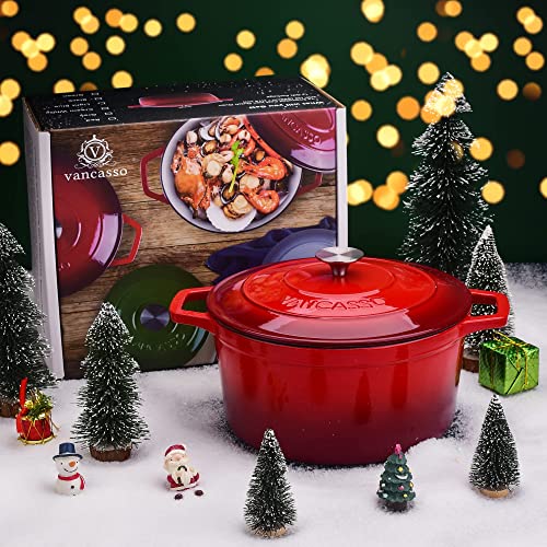 Vancasso Pentola Ghisa Set,2 Pezzi Set Pentola Pane Induzione Ø 22cm/2L, 28 cm/6L, Pentole in Ghisa per Stufati, Casseruola in Ghisa con Coperchio per Piani Cottura a Induzione e Fornelli Vari, Rosso