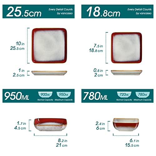 Vancasso Serie STERN Set Piatti, Servizio Piatti in Stoneware, Piatti Rettangolari con 12 Piatti Piani, Piatti Fondi, Ciotole Cereali e Piatti da Dessert per 12 Persone Stile vintage