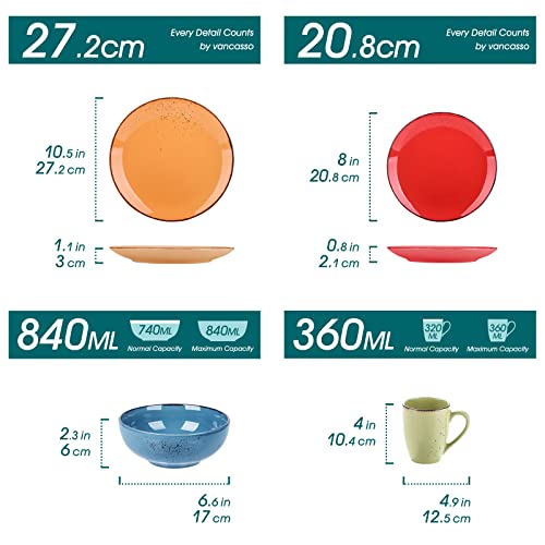 Vancasso Servizi Piatti 16 Pezzi, Set Piatti per 4 Persone in Gres, Servizi piatti Colorati, Servizi Piatti Combinati Moderni con Piatti Piani, Piatti da Dolci, Tazze