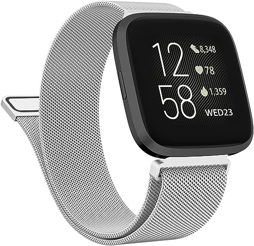 Vancle Cinturino Compatibile con Fitbit Versa 2 / Fitbit Versa/Versa Lite Cinturino, Cinturini in Acciale di Sport con Magnetica Unica per Fitbit Versa/Fitbit Versa 2/Versa SE (Argento,Grande)