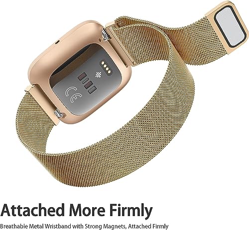 Vancle Cinturino Compatibile con Fitbit Versa 2 / Fitbit Versa/Versa Lite Cinturino, Cinturini in Acciale di Sport con Magnetica Unica per Fitbit Versa/Fitbit Versa 2/Versa SE (Oro Rosa,Grande)