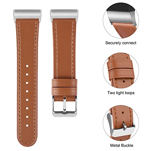 Vancle Compatibile con cinturino Charge 4/Charge 3, cinturino di ricambio in morbida pelle per Charge 4/Charge 3 uomo (marrone)