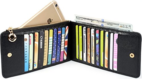 20 slot per schede, una tasca aperta e un vano con cerniera per banconote/cassa/cambio/un piccolo cellulare, come iPhone6/Samsung Galaxy S6.